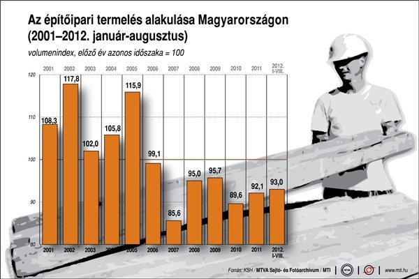 KSH: az építőipari termelés augusztusban 5,3 százalékkal csökkent