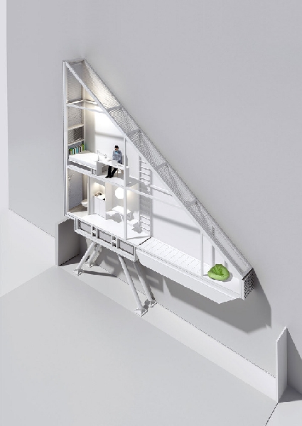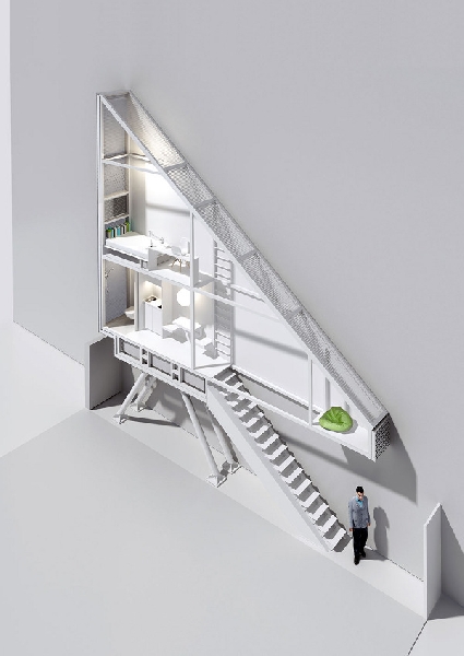 A kétemeletes, dőlt üvegtetejű, fémvázas épület nem felel meg a lengyel lakóházak szabványainak, ezért csak művészeti installációként jegyezhették be. A http://domkereta.pl honlapon megtekinthető piciny lakásba csak néhány létfontosságú berendezés került be: a földszinten egy konyhát és étkezőt, illetve fürdőhelyiséget alakítottak ki, az emeletre az íróasztalon kívül egy könyvespolc és egy egyszemélyes ágy fért csak be.