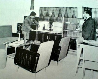 A tárlaton a bútorok mellett megjelennek a gyárak, a tervezők, a reklámozó lapok, a televízió és természetesen a bútorokat használó ember is.